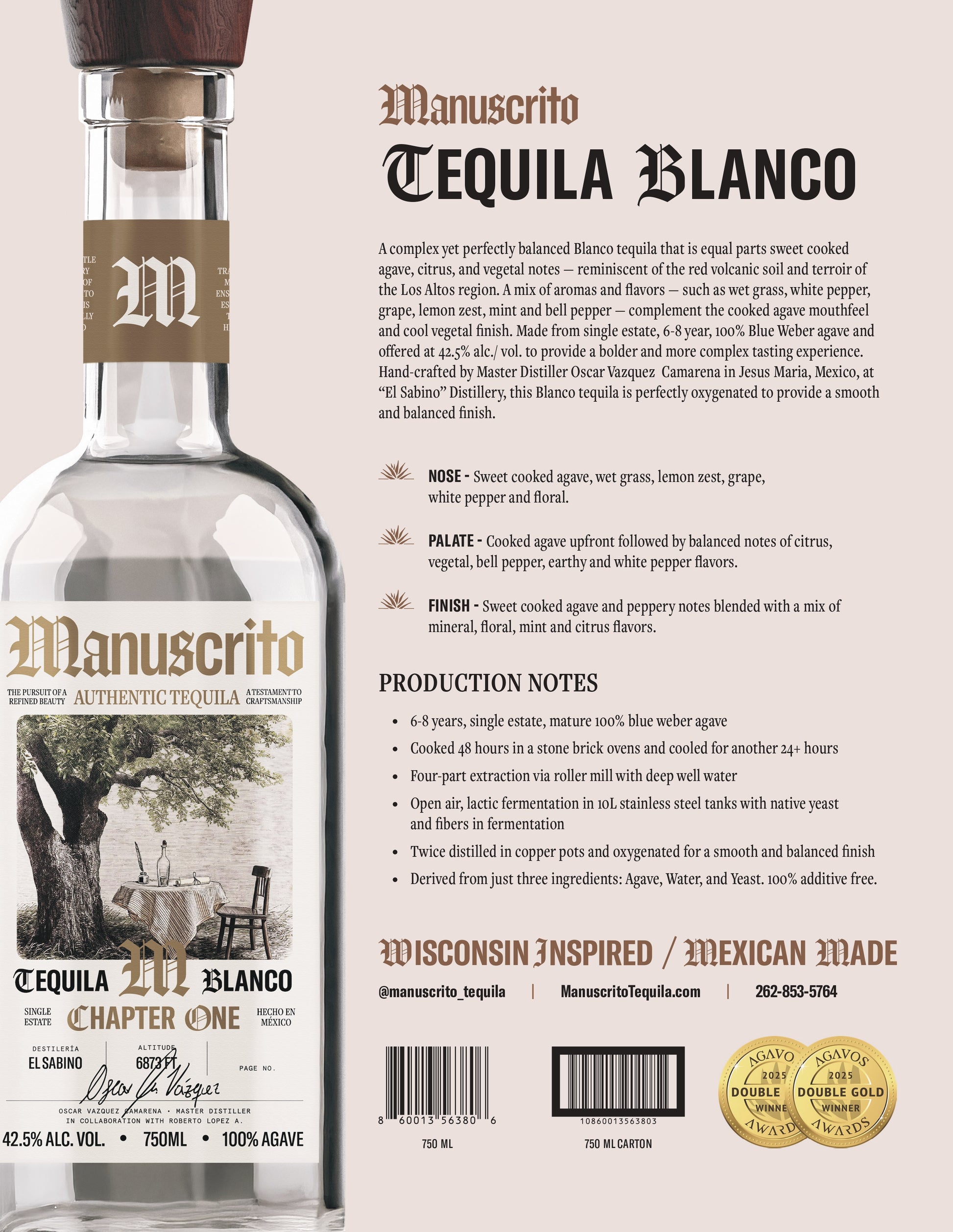 Description: A complex yet perfectly balanced Blanco tequila that is equal parts sweet cooked agave, citrus, and vegetal notes -- reminiscent of the red volcanic soil and terroir of the Los Altos region. A mix of aromas and flavors -- such as wet grass, white pepper, grape, lemon zest, mint and bell pepper -- complement the cooked agave mouthfeel and cool vegetal finish. Made from single estate, 6-8 year, 100% Blue Weber agave and offered at 42.5% alc./vol. to provide a bolder and more complex tasting experience. Hand-crafted by Master Distiller Oscar Vazquez Camarena in Jesus Maria, Mexico, at “El Sabino” Distillery, this Blanco tequila is perfectly oxygenated to provide a smooth and balanced finish.
